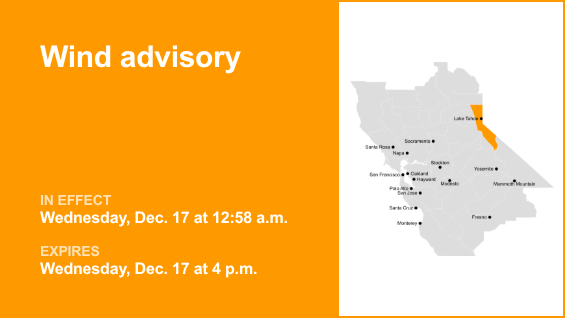 The Greater Lake Tahoe Area is under a wind advisory which was issued by the National Weather Service on Wednesday…