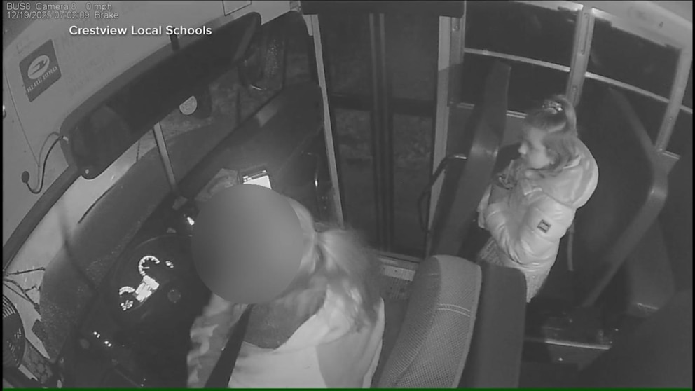 Surveillance video from inside a school bus shows the moment heroic students in Ashland, Ohio, helped save a bus driver…